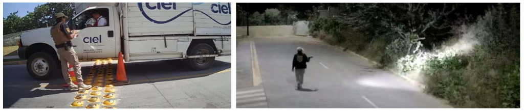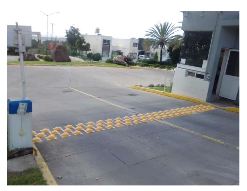 - Se instalaron boyas a la altura de la caseta para disminuir la velocidad de los vehículos, buscando así que aún sin plumas se pueda realizar un control de ingreso y salida del fraccionamiento.